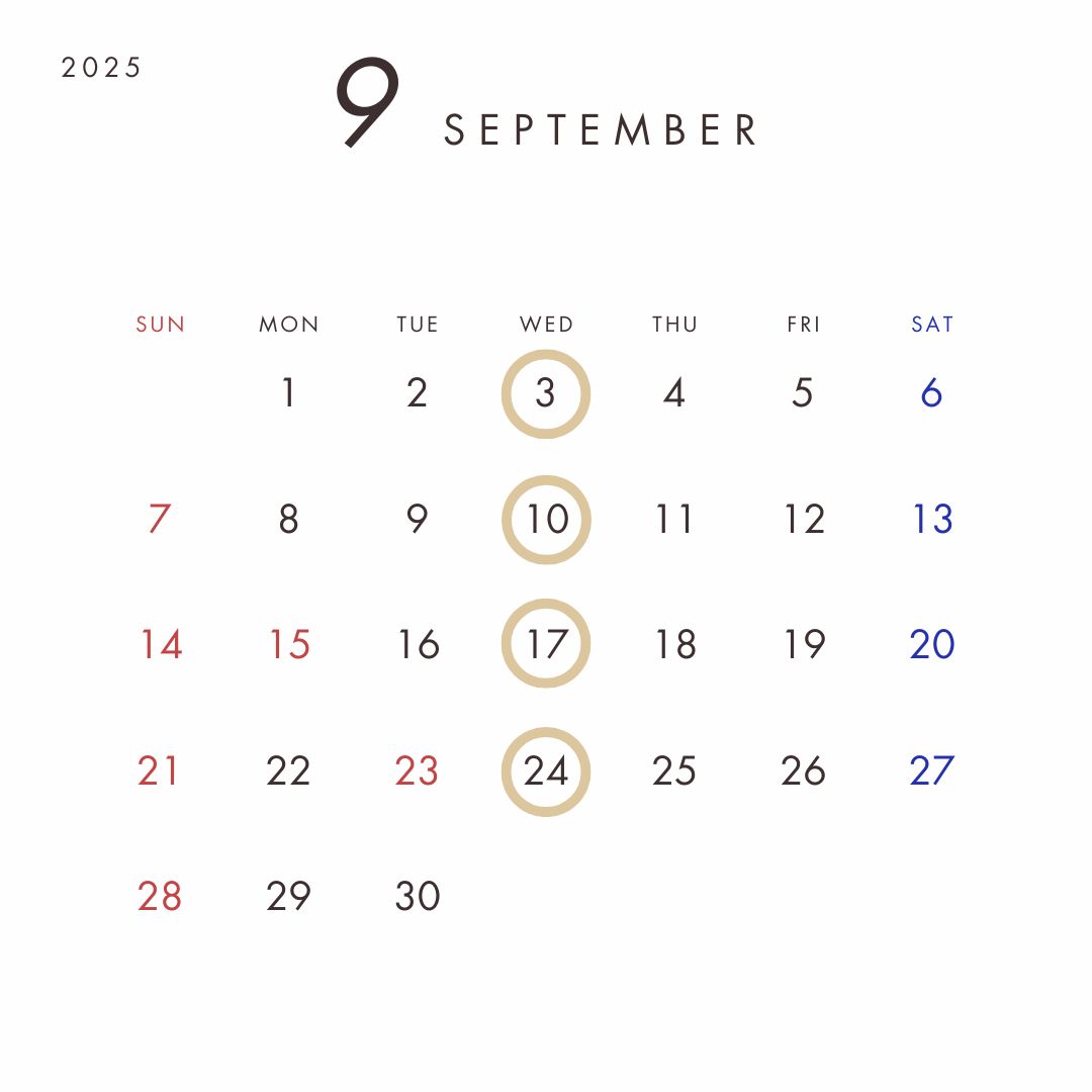 2025.9月のお休み