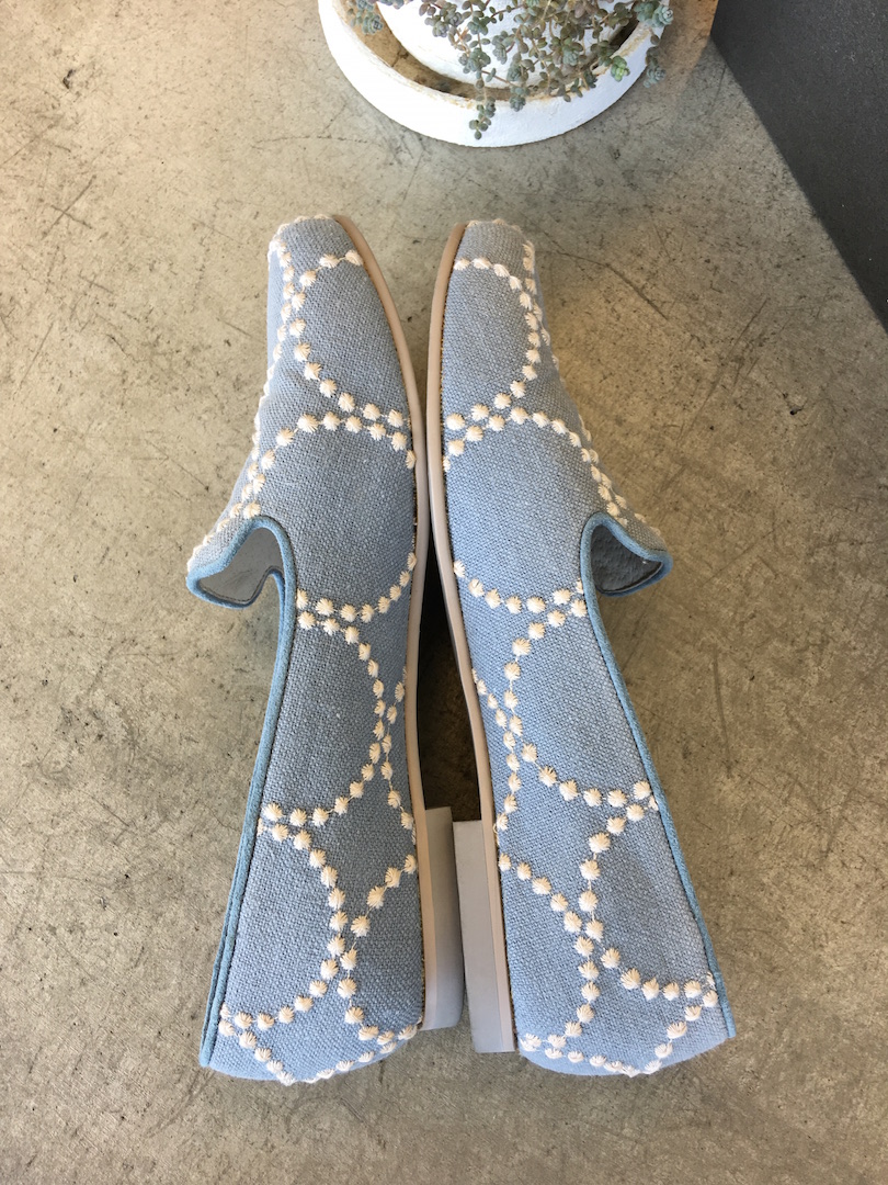 minä perhonen ミナペルホネンのスリッポンスニーカーです。tambourine柄で爽やかなシューズです。